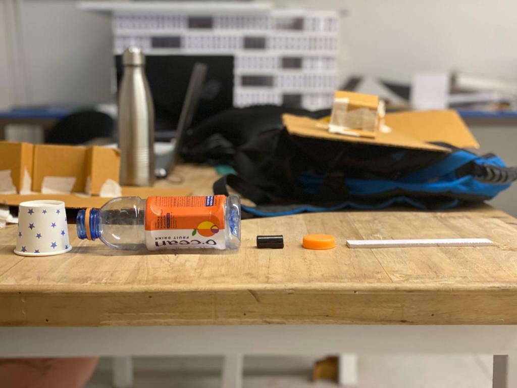 As you saw my picture here my anchor points are a cup and a cap of a marker and the middle juice bottle, piece of plastic sheet, and cap of a bottle.